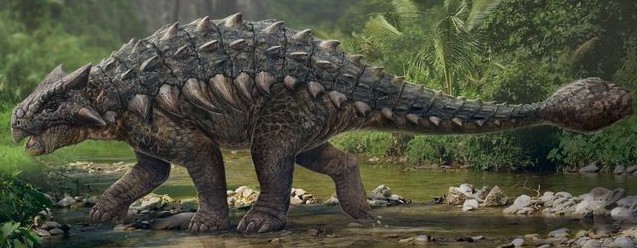 Ankylosaurus: A heavily armored dinosaur found in North America, equipped with a massive tail club.