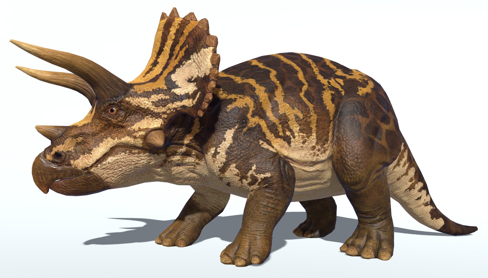 Triceratops: A three-horned herbivore found in North America, easily recognized by its large frill and horns.